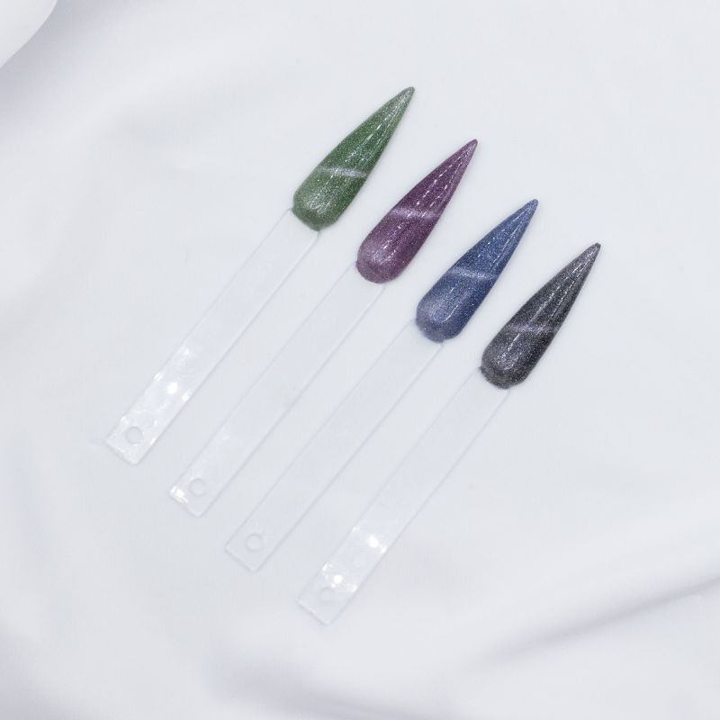 Pour un effet œil de chat, notre gamme "cat eye gel" est parfaite. L'utilisation est très simple, il suffit de passer délicatement l'aimant Cat Eyes juste au-dessus de l'ongle sans le toucher afin de créer le motif « œil de chat ». Catalysez 60 secondes sous LED et 2 minutes sous UV. Appliquez une 2ème couche de couleur et procédez de la même manière. Appliquez ensuite votre finition gel de votre choix.