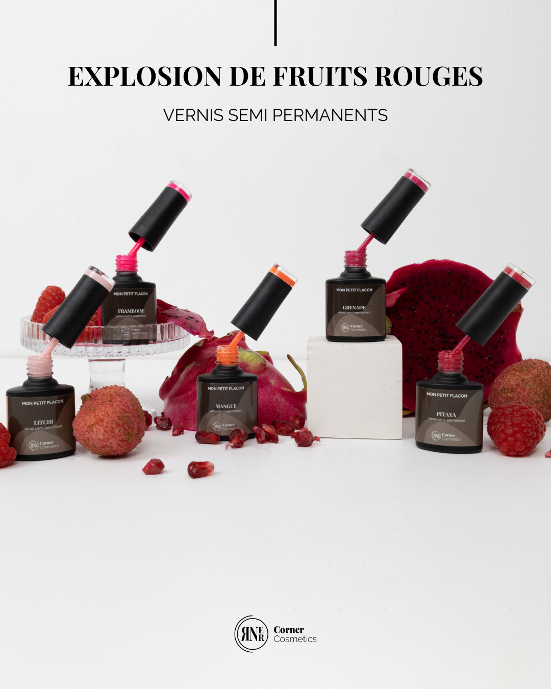 Plongez dans un univers intense et coloré avec notre toute nouvelle collection de vernis semi-permanents fruités. Des teintes vibrantes, inspirées des fruits les plus savoureux, pour des ongles éclatants de fraîcheur et de gourmandise !